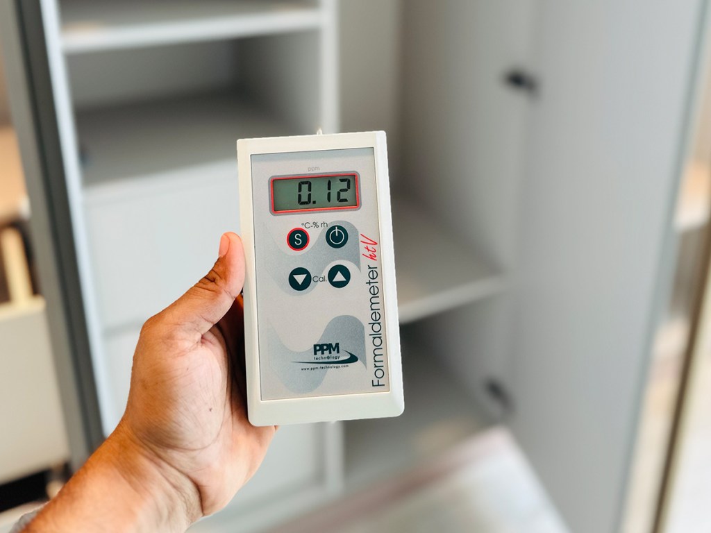 Formaldehyde is a colorless gas with a strong odor, commonly found in pressed wood products such as particleboard, MDF, and plywood. It is also present in adhesives, glues, and coatings used in furniture and flooring, as well as in paints, varnishes, cleaning products, and insulation materials.
